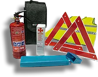 Bolso incluye extintor de 1k, botiquín, 2 triángulos reflectantes y chaleco reflectante